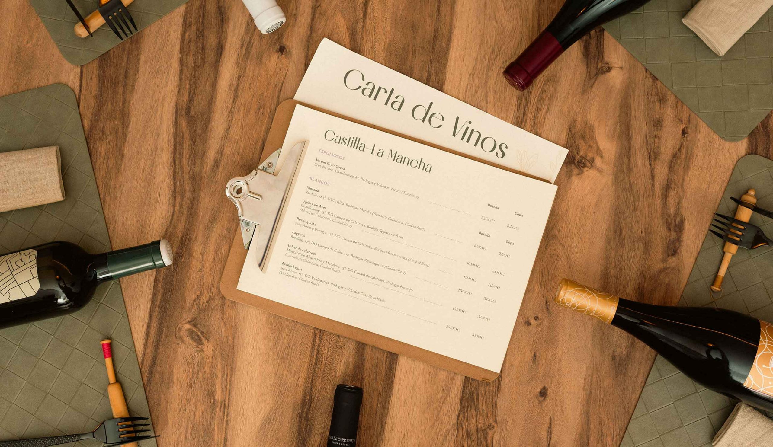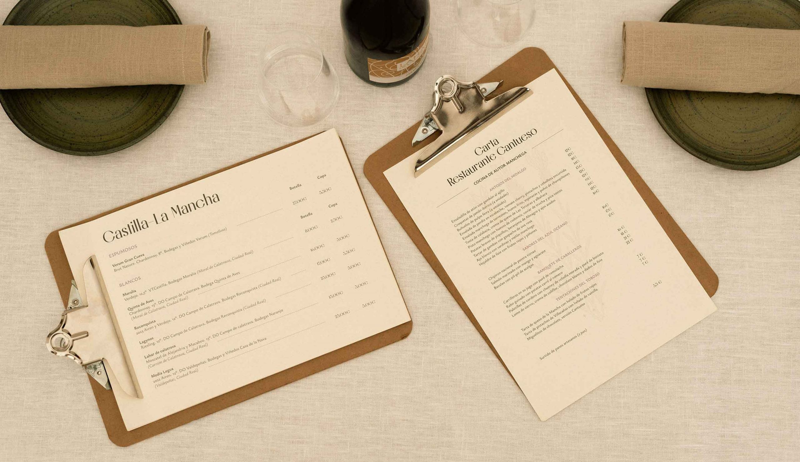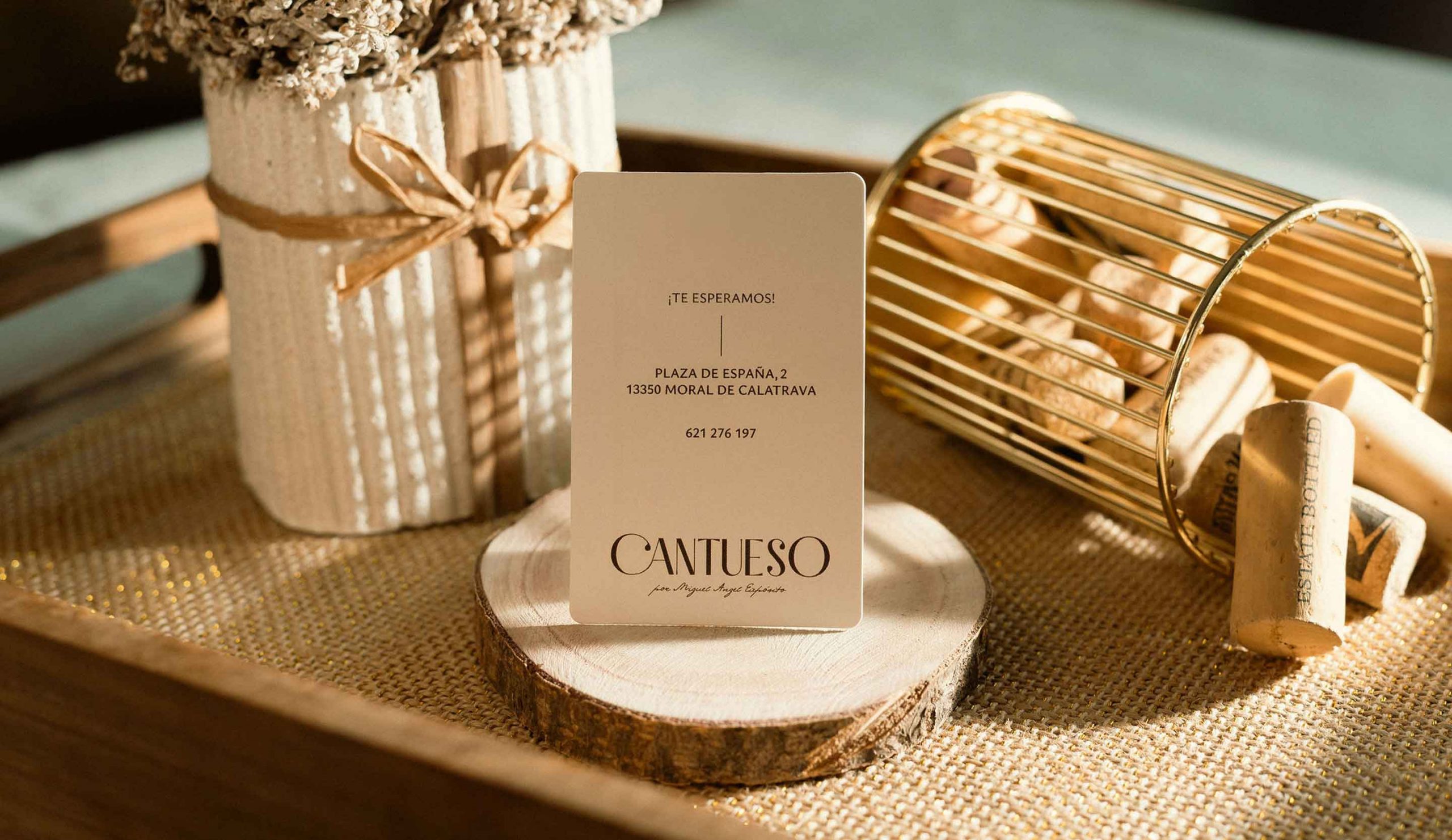 Para desarrollar la identidad de Cantueso por Miguel Ángel Expósito partimos de un análisis profundo de su esencia: un restaurante que combina la tradición manchega con una mirada actual. Nos inspiramos en sus raíces culturales, la historia de la tierra y los valores que ya estaban presentes en el propio espacio físico del restaurante. Esta conexión directa con el entorno y su autenticidad marcaron la estrategia de marca, guiándonos hacia una identidad visual que refleja tanto la herencia local como la experiencia contemporánea que ofrece Cantueso.