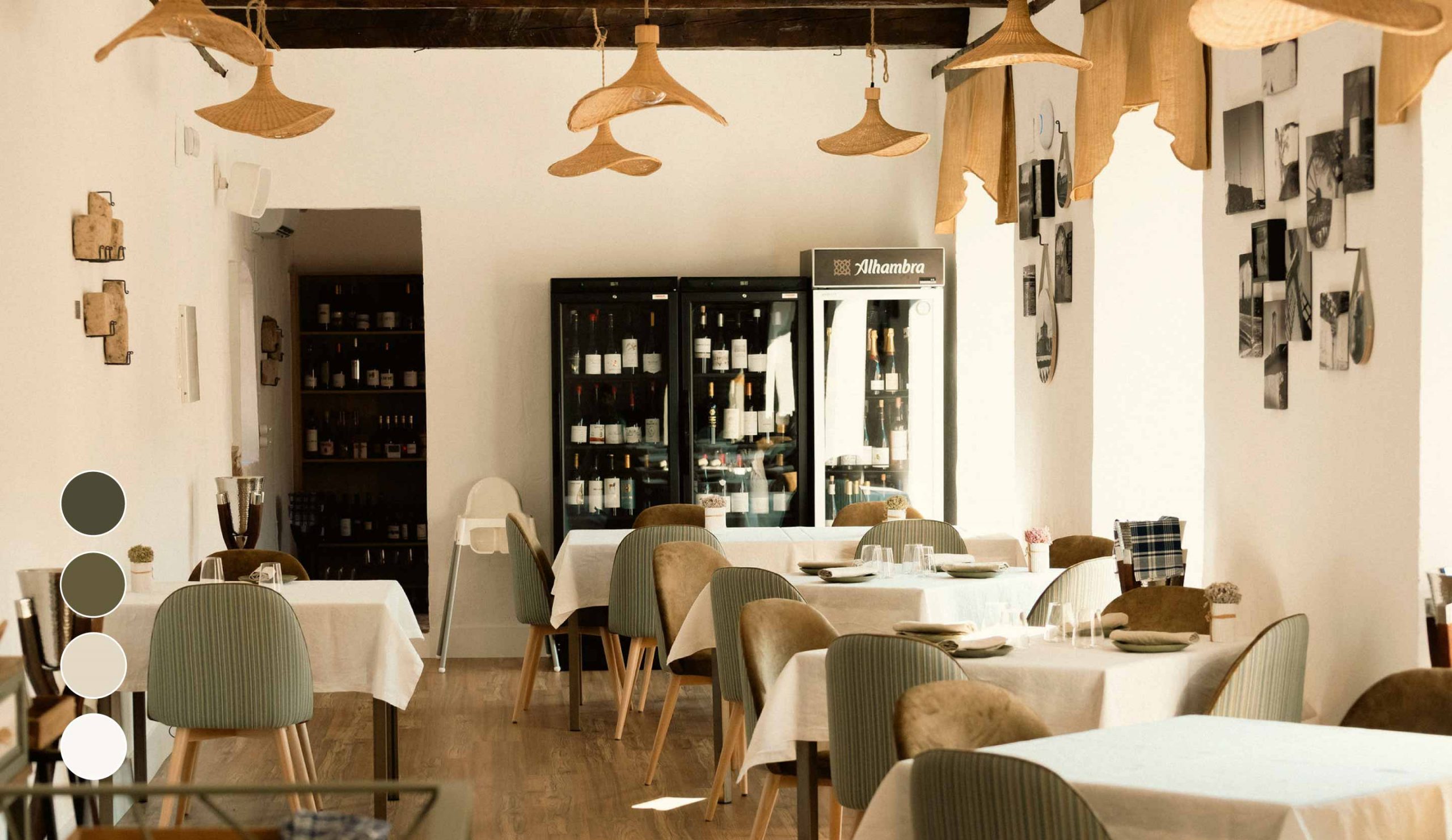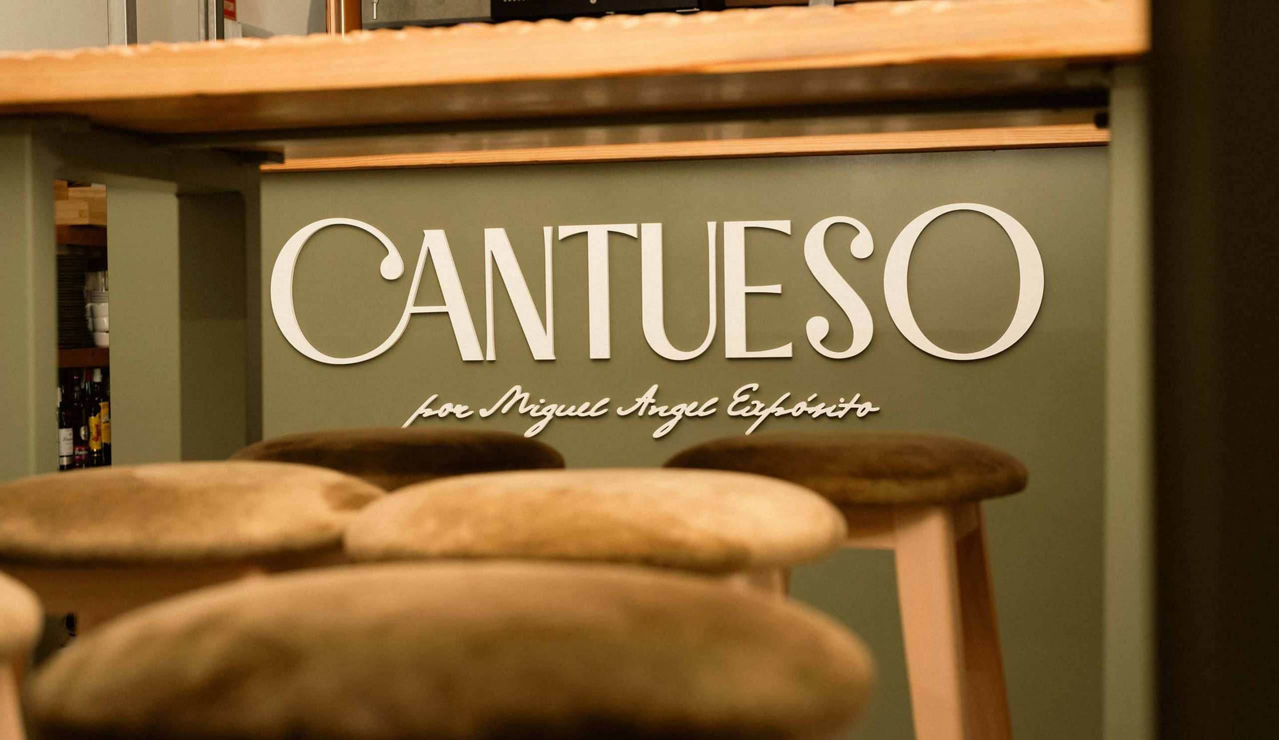 La marca Cantueso se materializa en cada detalle del restaurante, reforzando su identidad y experiencia de marca. Desde el diseño de las cartas y material gráfico hasta el vestuario del equipo, todo mantiene coherencia visual con los valores definidos. Elementos como las tarjetas o la rotulación de los espacios transmiten una identidad cuidada y cercana, generando un ambiente único en el que tradición y contemporaneidad conviven en armonía.